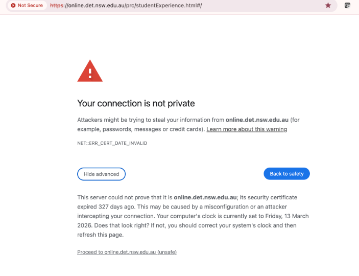In 2024, the NSW Premier’s Reading Challenge (PRC) moved from the previous online.det.nsw.edu.au domain to a new, secure platform. The old URL is no longer supported, and redirects have now ended. As a result, browsers may display a security warning if this outdated link is used.