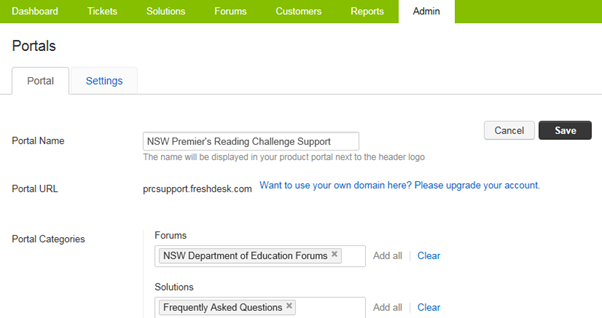 The Support site is referred to as a Portal for the purpose of Freshdesk administration.
