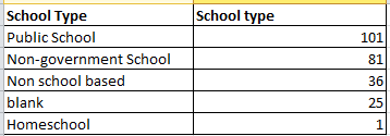 in the example above, I asked to see all rows that have School Type of Public School, this tells me that 268 tickets out of 597 were logged by Public Schools